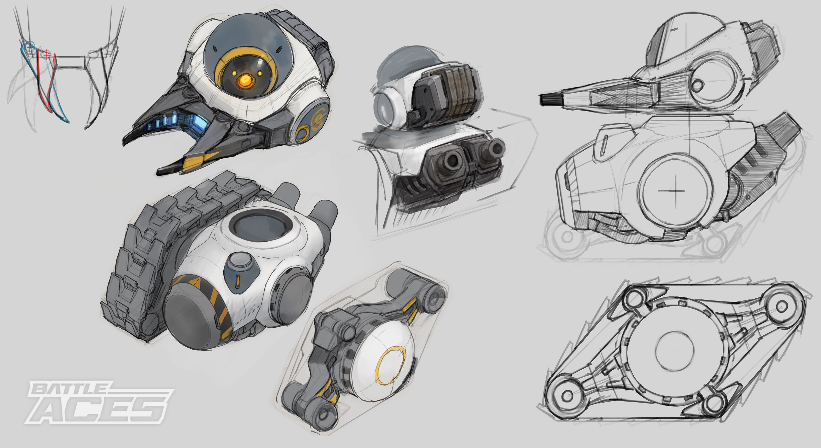 One of the few units partly concepted out traditionally, the Shocker started off as a pretty straightforward chunky tank and overall stayed quite close to the first sketch. The only big thing that changed in its final form is a more insect-like pincer cannon replacing very traditional gun barrels.