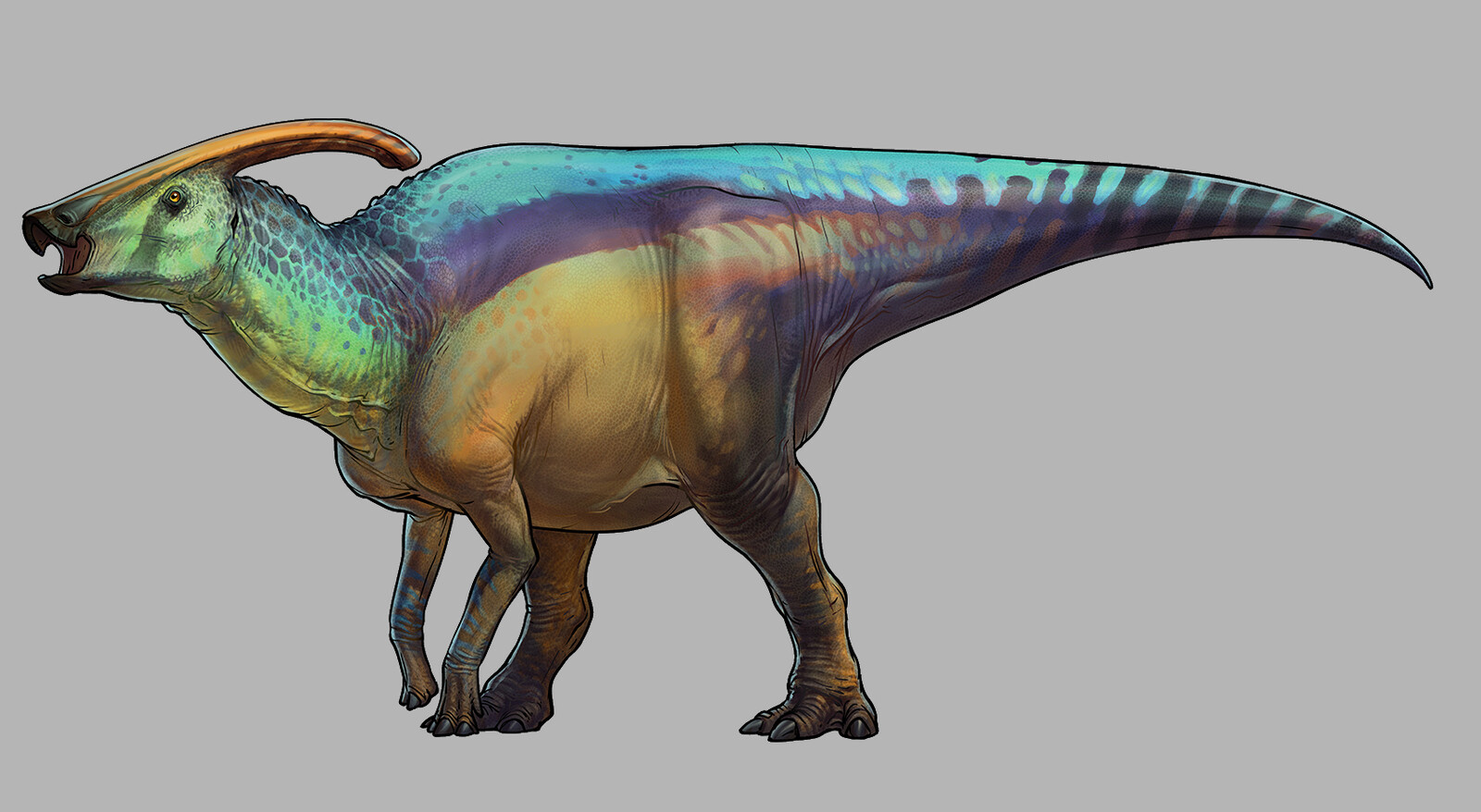 I've always loved Parasaurolophus (not alone there, I know!) so it was great fun to do this one. I was glad they chose the fun color scheme though I think I might have gone a bit overboard with it in the end.