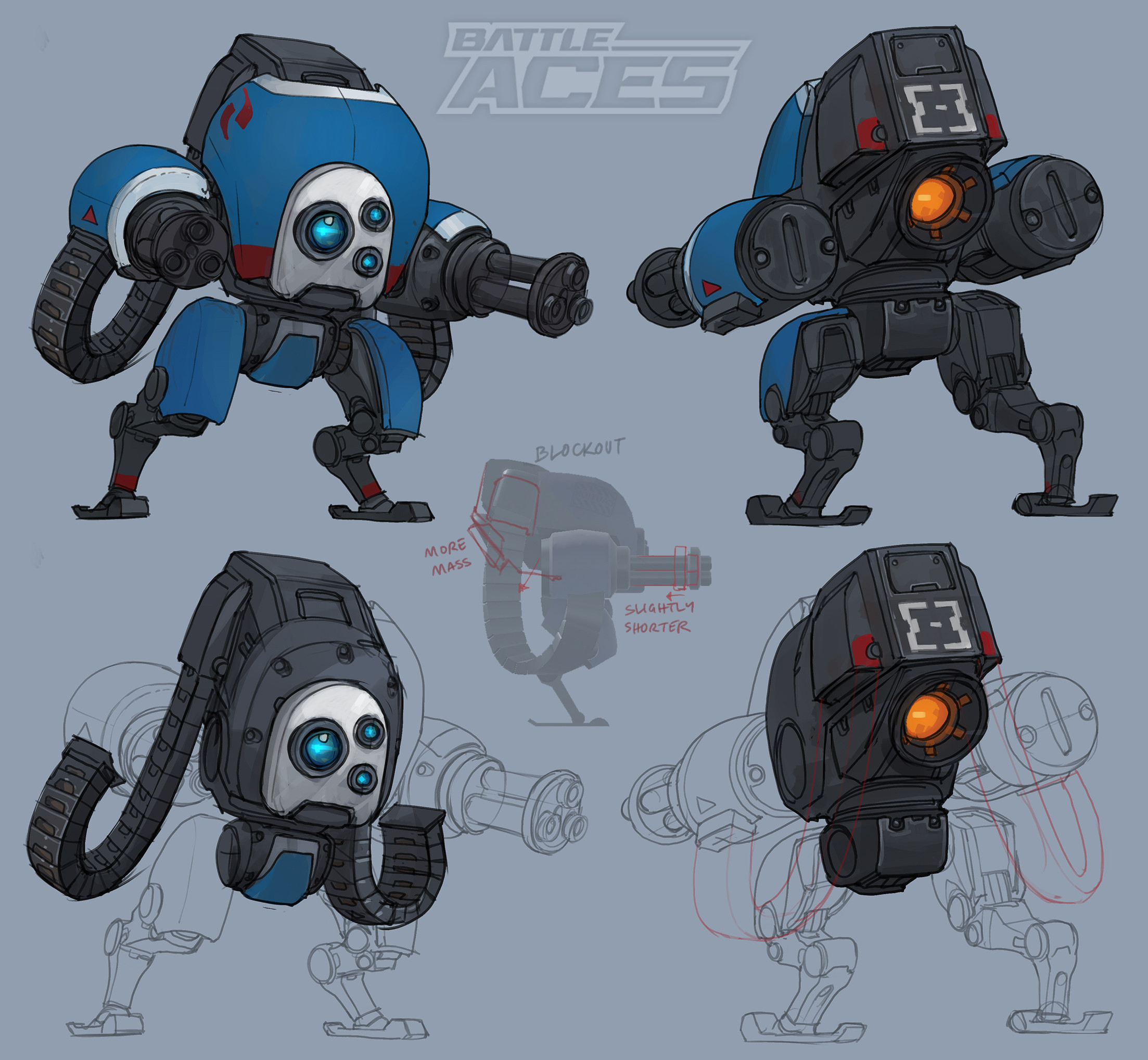Senkaishu's Gunbot and Missilebot were linked by their Overclock ability, and when we had a couple of higher tier units slated to join the lineup I knew I wanted to keep them consistent design-wise.